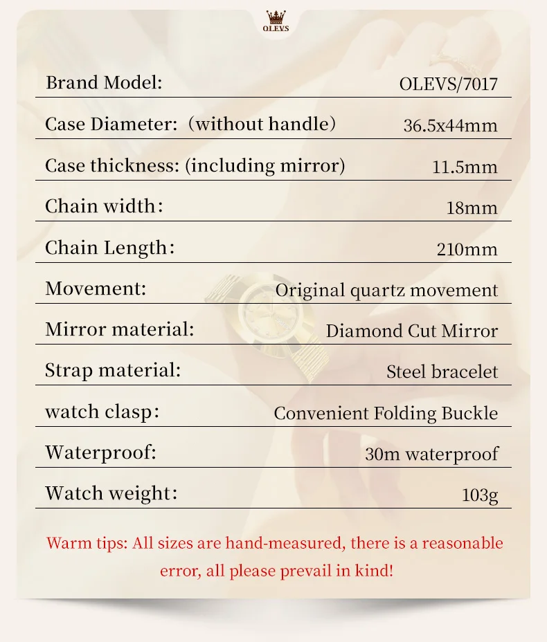 Imagine a alegria dela ao receber este relógio como presente, um símbolo de amor e carinho que ela poderá usar em qualquer ocasião. O OLEVS 7017 é mais do que um acessório; é uma declaração de estilo e bom gosto.