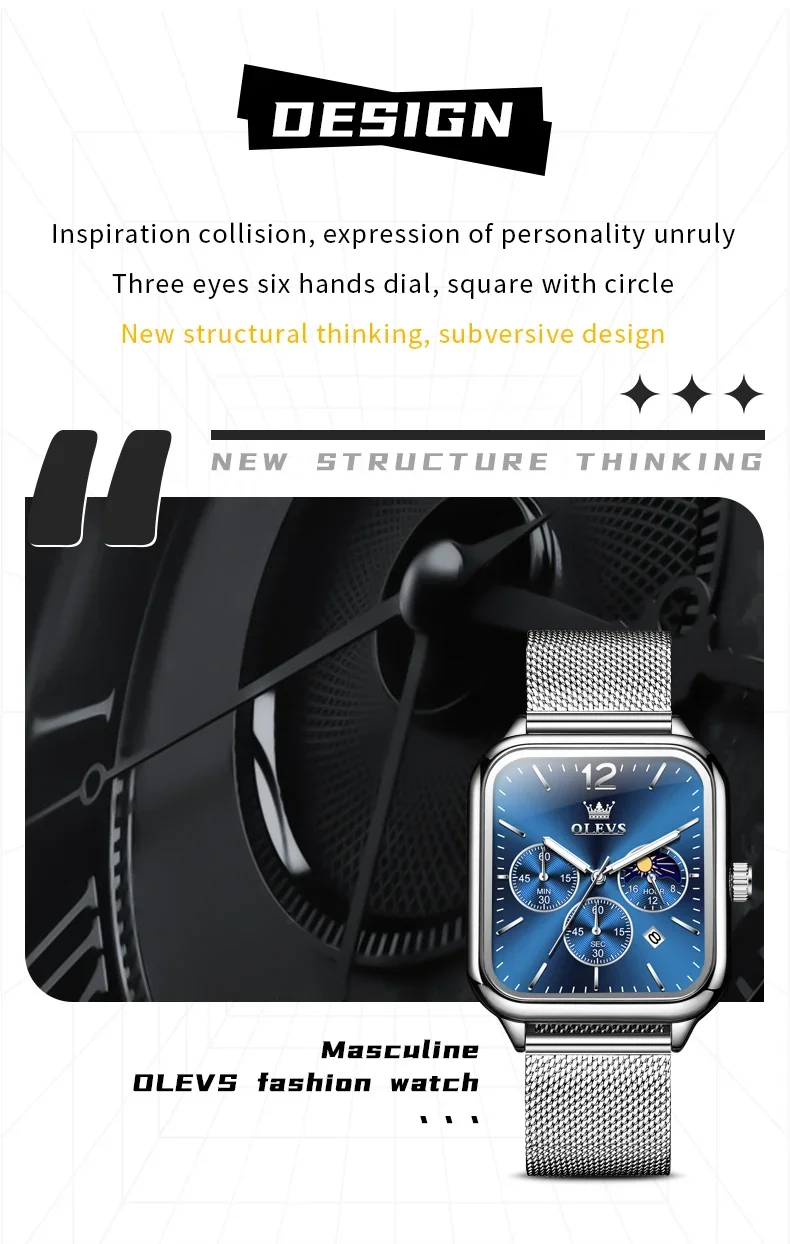 OLEVS Relógio Masculino 9914 - Estilo Esportivo e Funcionalidade 35-39mm